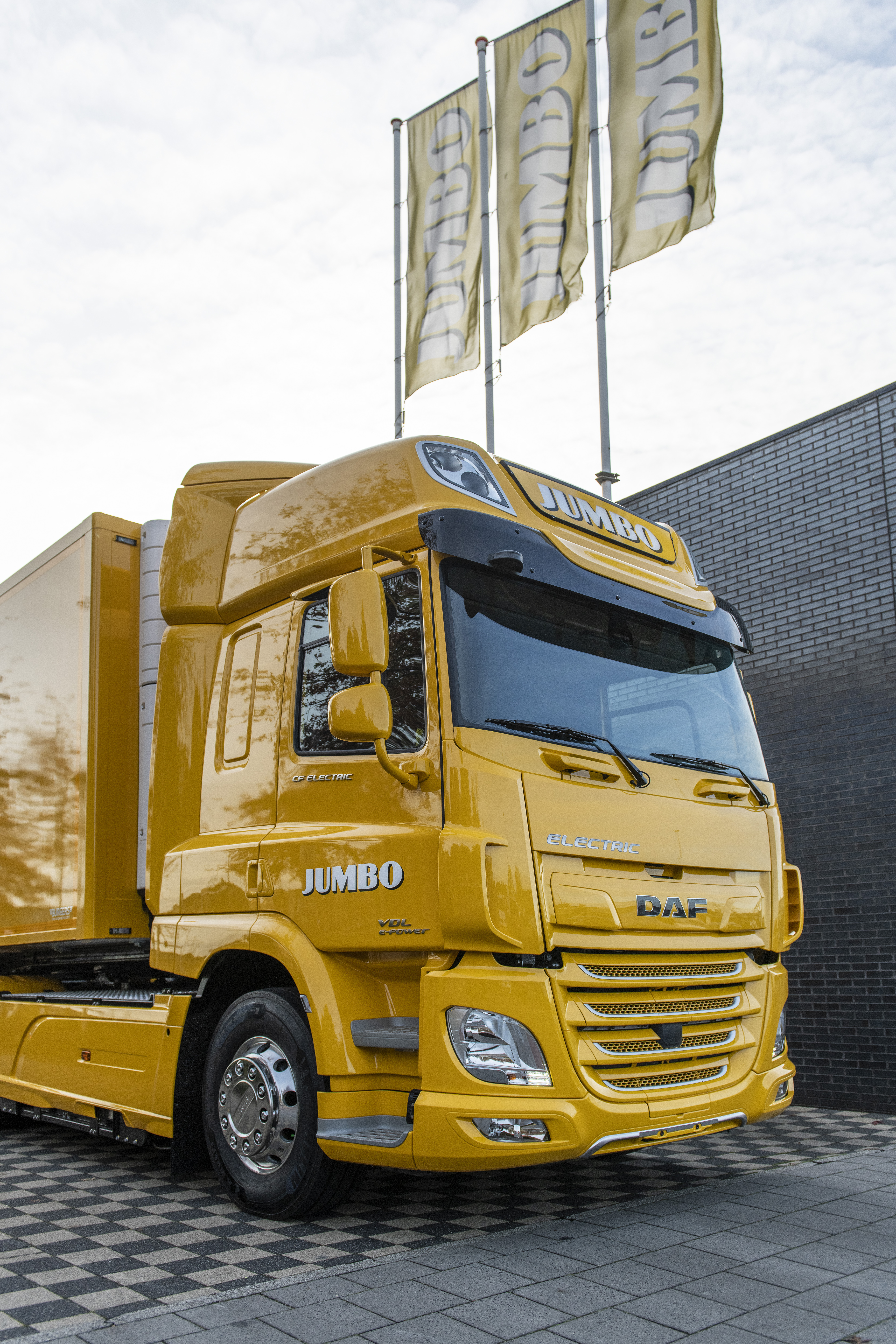 El primer DAF CF Electric listo para cumplir un servicio representa un hito importante para DAF Trucks, VDL y Jumbo. La entrega del vehículo comercial DAF completamente eléctrico marca el inicio de una serie de pruebas de campo a largo plazo que implica tanto a camiones completamente eléctricos como híbridos.